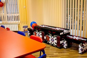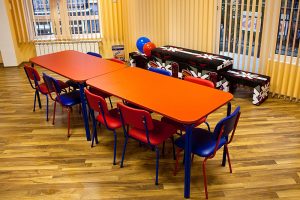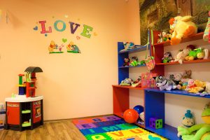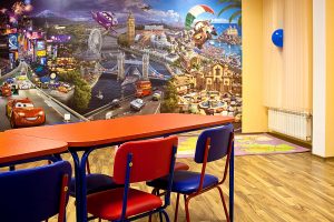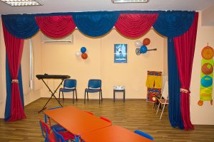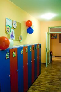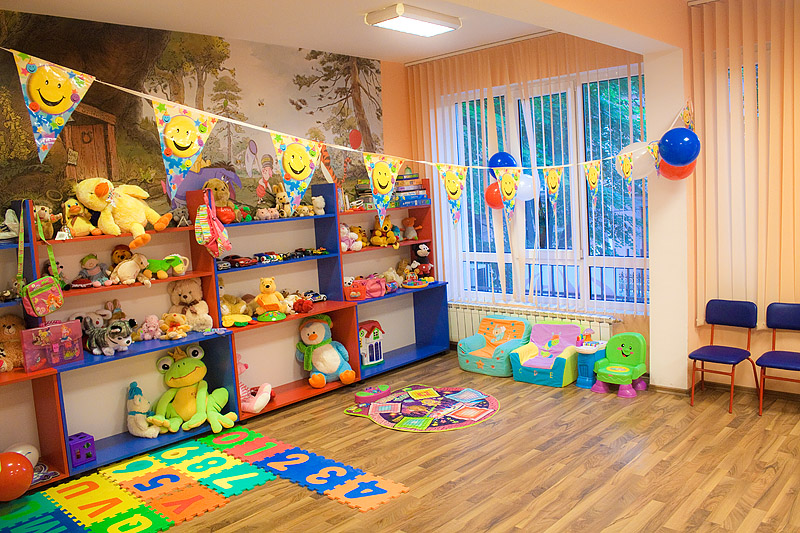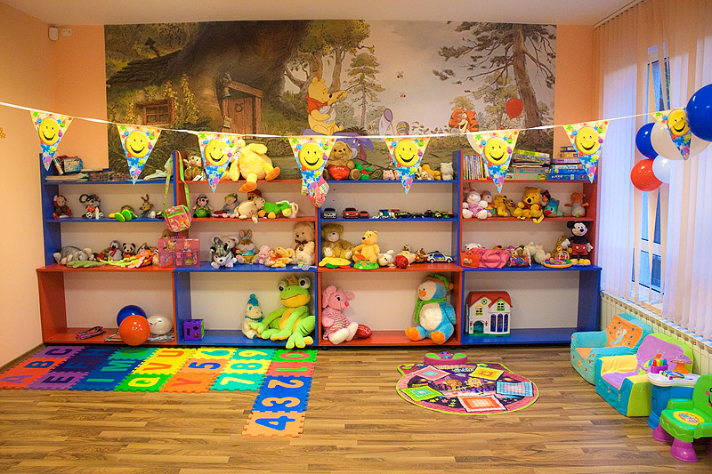 Големи, просторни и светли стаи с достатъчно място за игра, с музикален кът, театър, интерактивна бяла дъска, аудио уредби, телевизори, софтуер и много играчки! Детска библиотека /с английски книжки, разбира се/. Базата разполага и със собствена кафетерия за хранене /храната е здравословна/ и със собствен вътрешен двор с детски кът за игра.